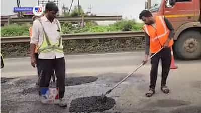 Tv9 मराठी’च्या बातमीचा इम्पॅक्ट ! 12 तासात यंत्रणा कामाला, खड्डे बुजवण्यास सुरुवात!