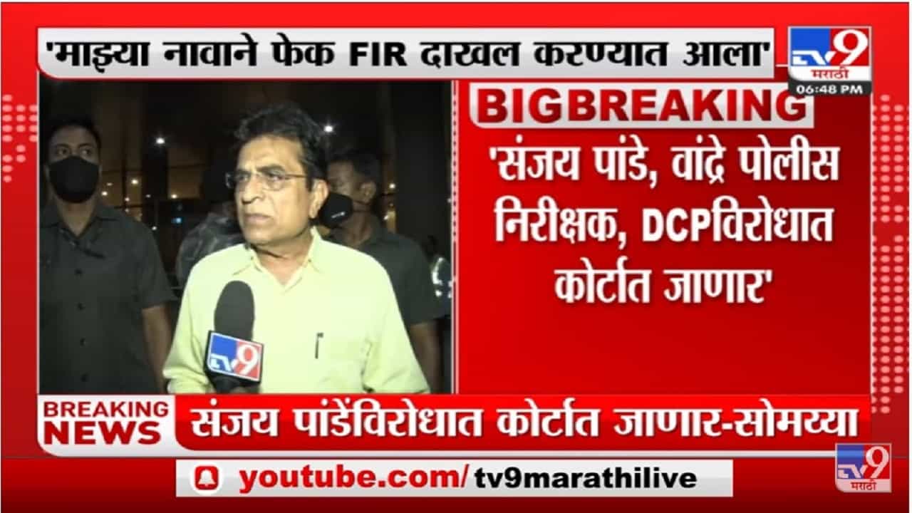 मुंबई : वांद्रे पोलीस स्टेशनचे सीनिअर पोलिस इन्स्पेक्टर आणि डीसीपी यांनी माझ्या विरोधात खोटी एफआयआर दाखल केला आहे. त्यांना संजय पांडे केव्हा अटक करणार ही खोटी एफआयआर आहे, असं सांगितल्यानंतर त्यांनी कारवाई करायला सुरुवात केली. उद्या मी संदर्भात पोलीस स्टेशनमध्ये जाऊन तक्रार दाखल करणार आहे. आणि त्यानंतर आम्ही कोर्टात जाणार आहोत. त्यात आरोपी नंबर एक वांद्रे पोलीस स्टेशनचे सिनियर पोलिस इन्स्पेक्टर, डीसीपी आणि तिसरे खुद्द मुंबई पोलीस आयुक्त संजय पांडे आहेत. हे सगळं नाटक सुरू आहे. काल काही शिवसैनिकांना अटक केले, चहा पाजला आणि सोडून दिले, असे किरीट सोमैया यांनी सांगितले.