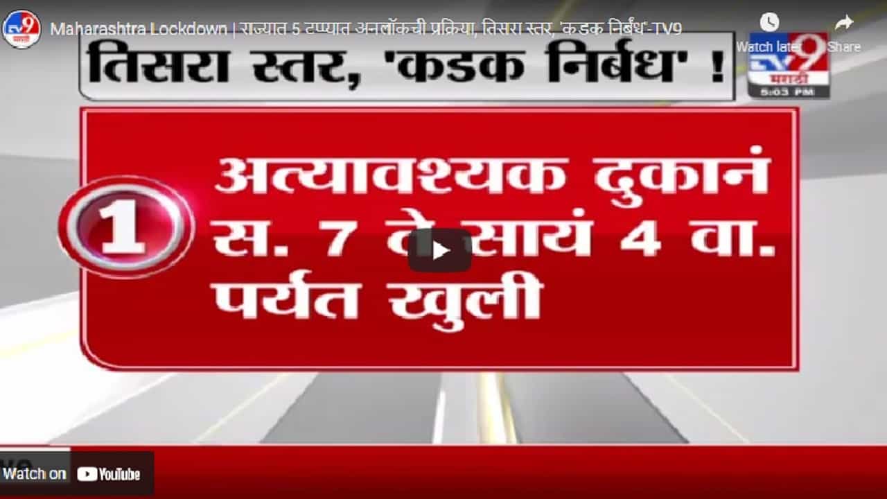 Maharashtra Lockdown | राज्यात 5 टप्प्यात अनलॉकची प्रक्रिया, जाणून घ्या काय बंद काय सुरु ?