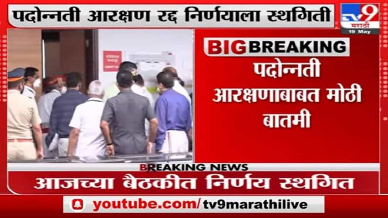 मुंबई : पदोन्नतीतील आरक्षण (reservation in promotion) रद्द करण्याच्या निर्णयाला तूर्तास स्थगिती देण्यात आली आहे.पदोन्नतीतील आरक्षण (reservation in promotion) रद्द करण्याच्या निर्णयाला तूर्तास स्थगिती देण्यात आली आहे. ठाकरे सरकारने हा मोठा निर्णय घेतला. पदोन्नतीमधील आरक्षण रद्द करण्याच्या निर्णयामुळे बराच वाद झाला होता. आज उपमुख्यमंत्री अजित पवार यांच्यासोबत झालेल्या बैठकीत हा निर्णय स्थगित करण्यात आला. या निर्णयावरुन राज्य सरकारवर टीका होत होती. त्यामुळे महाविकास आघाडी सरकारला एक पाऊल मागे घ्यावे लागले.