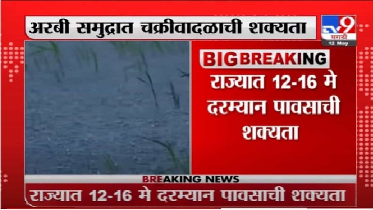 महाराष्ट्रात पुढील 5 दिवस पूर्वमोसमी पाऊस पडण्याचा अंदाज आहे. अरबी समुद्रात चक्रीवादळ निर्माण होण्याची शक्यता आहे