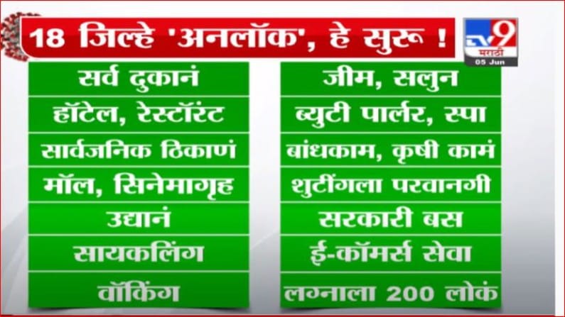 Maharashtra Unlock | राज्यात सोमवारपासून 18 जिल्ह्यांमध्ये ‘अनलॉक’, काय सुरु, काय बंद ?