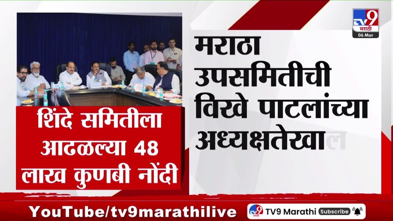 मराठा उपसमितीची विखे पाटलांच्या अध्यक्षतेखाली मुंबईत एक महत्त्वपूर्ण बैठक पार पडली. या बैठकीत मराठा आरक्षणासंदर्भात अनेक महत्त्वाच्या मुद्द्यांवर चर्चा करण्यात आली. शिंदे समितीने केलेल्या कामाचा आढावा यावेळी घेण्यात आला. शिंदे समितीला आतापर्यंत 48 लाख कुणबी नोंदी आढळल्या आहेत, असे या बैठकीत नमूद करण्यात आले.