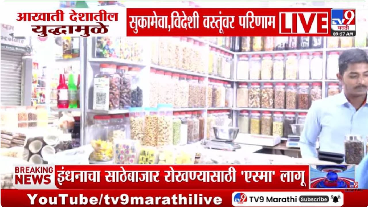 आखाती देशांमध्ये सुरू असलेल्या युद्धाचा परिणाम आता मुंबईतील बाजारपेठांवरही दिसू लागला आहे. विशेषतः मुंबईच्या क्रॉफर्ड मार्केटमध्ये आयात होणाऱ्या सुका मेवा आणि इतर विदेशी वस्तूंवर त्याचा मोठा परिणाम झाला आहे. युद्धाच्या पार्श्वभूमीवर परदेशातून येणाऱ्या मालाची आवक कमी झाली आहे. त्यामुळे इराणी पिस्ता, पाईन नट्स, खजूर यांसारख्या सुका मेव्याच्या किमतींमध्ये वाढ झाल्याचे व्यापाऱ्यांकडून सांगण्यात येत आहे.