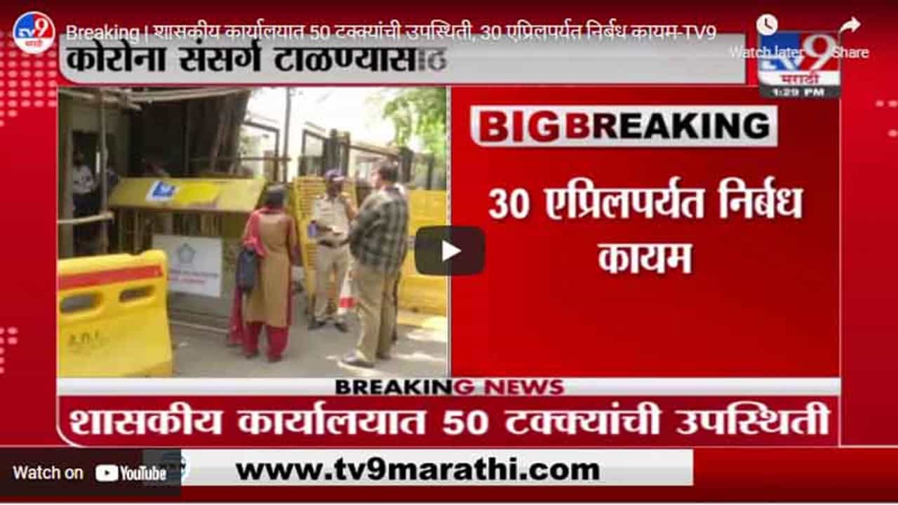Breaking | शासकीय कार्यालयात 50 टक्क्यांची उपस्थिती, 30 एप्रिलपर्यत निर्बध कायम