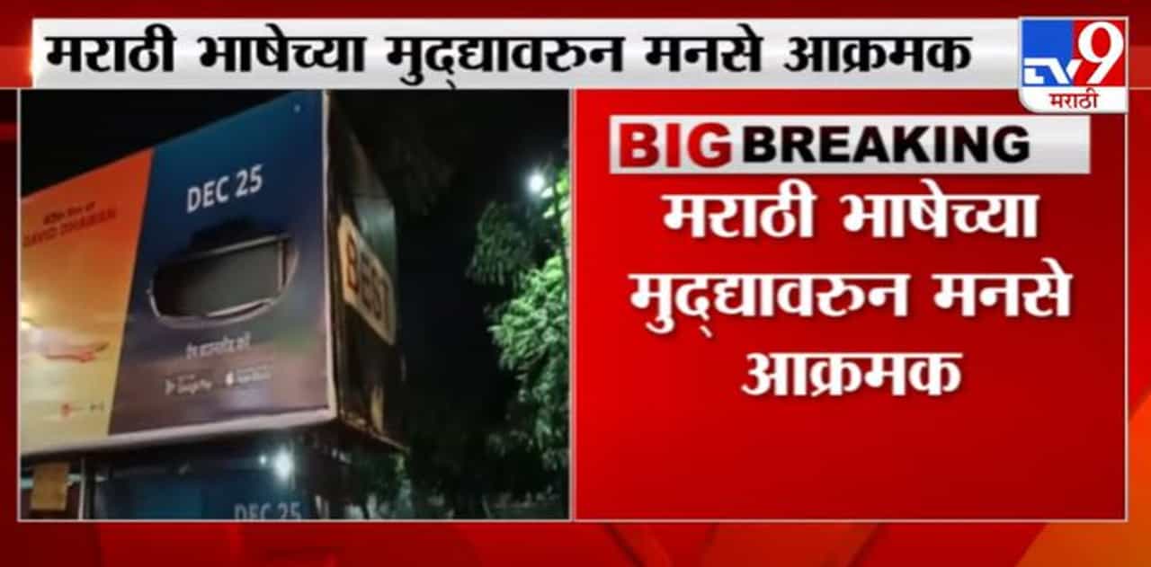 Mumbai | मराठी भाषेच्या मुद्यावरुन मनसे आक्रमक, अॅमेझॉनच्या जाहिरातीचं होर्डिंग फाडलं