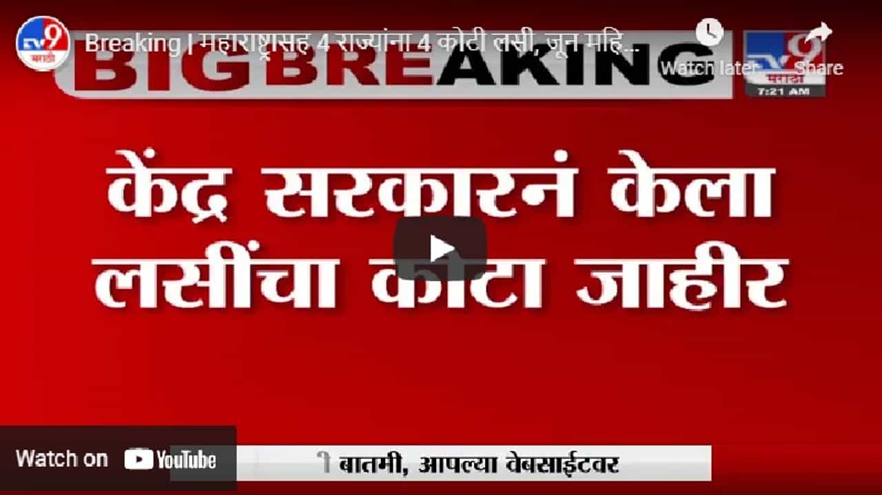 महाराष्ट्रासह चार मोठ्या राज्यांना जून महिन्यात प्रत्येकी 4 कोटी लसींचं वाटप केलं जाणार आहे, केंद्र सरकारने लस वितरणाचा कोटा नुकताच जाहीर केला
