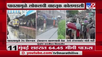 हवमान खात्याने वर्तवलेल्या अंदाजानुसार मुंबईत जोरदार पाऊस कोसळत आहे. मुंबई शहरासह उपनगरात रात्रीपासून पावसाचं धुमशान पहायला मिळत आहे. दादर, हिंदमाता, सायन किंग्ज सर्कल येथे सखल भागांमध्ये पाणी साचायला सुरुवात झाली आहे. अनेक भागांमध्ये दीड ते दोन फूटांपर्यंत पाणी साचलं होतं. यामुळे दुचाकी आणि चारचाकींचे टायर देखील पाण्याखाली गेले होते तर सकाळी ऑफिसला जाणाऱ्या मुंबईकरांची पावसाने चांगलीच तारांबळ उडवली. त्यामुळे मुंबईचं जनजीवन विस्कळीत झालं आहे. पावसामुळे लोकल वाहतूक विस्कळीत झाली आहे. मध्य, हार्बर रेल्वे वाहतूक विस्कळीत झाली आहे तर रस्ते वाहतूकही मंदावली आहे. वेस्टर्न, ईस्टर्न हायवेवर अनेक ठिकाणी पाणी साचलं आहे.| Mumbai Heavy Rain Railway and road Transportation slows down