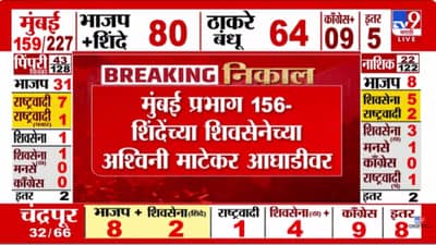 महाराष्ट्र स्थानिक स्वराज्य संस्था निवडणूक 2026 च्या निकालांचे कल आता समोर येत आहेत. मुंबईत भाजप आणि ठाकरेंची शिवसेना यांच्यात जोरदार लढत सुरू असून, अनुक्रमे 60 आणि 57 जागांवर आघाडीवर आहेत. मुंबई प्रभाग 156 मध्ये शिंदे गटाच्या शिवसेनेच्या अश्विनी माटेकर सध्या आघाडीवर आहेत, हे एक महत्त्वाचे अपडेट आहे.
