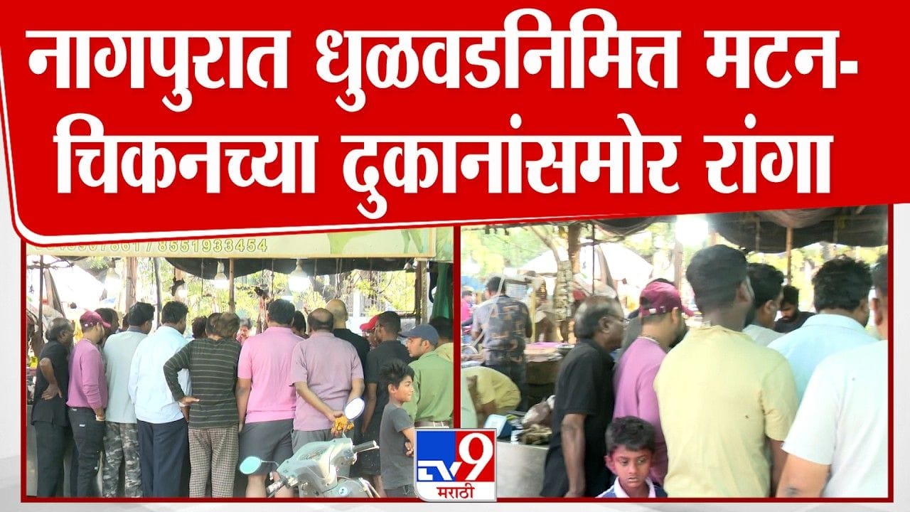 धुळवडीनिमित्त नागपुरातील चिकन आणि मटण मार्केटमध्ये प्रचंड गर्दी उसळली आहे. पहाटेपासूनच नागरिक मटण खरेदीसाठी रांगा लावून आहेत. मागणी वाढल्याने दरांमध्ये १० ते २० टक्क्यांपर्यंत वाढ झाली आहे. सुमारे १०,००० बोकडांच्या मटणाची विक्री आणि ५० कोटींहून अधिक उलाढालीचा अंदाज आहे, नागरिक दर वाढूनही उत्साहाने खरेदी करत आहेत.
