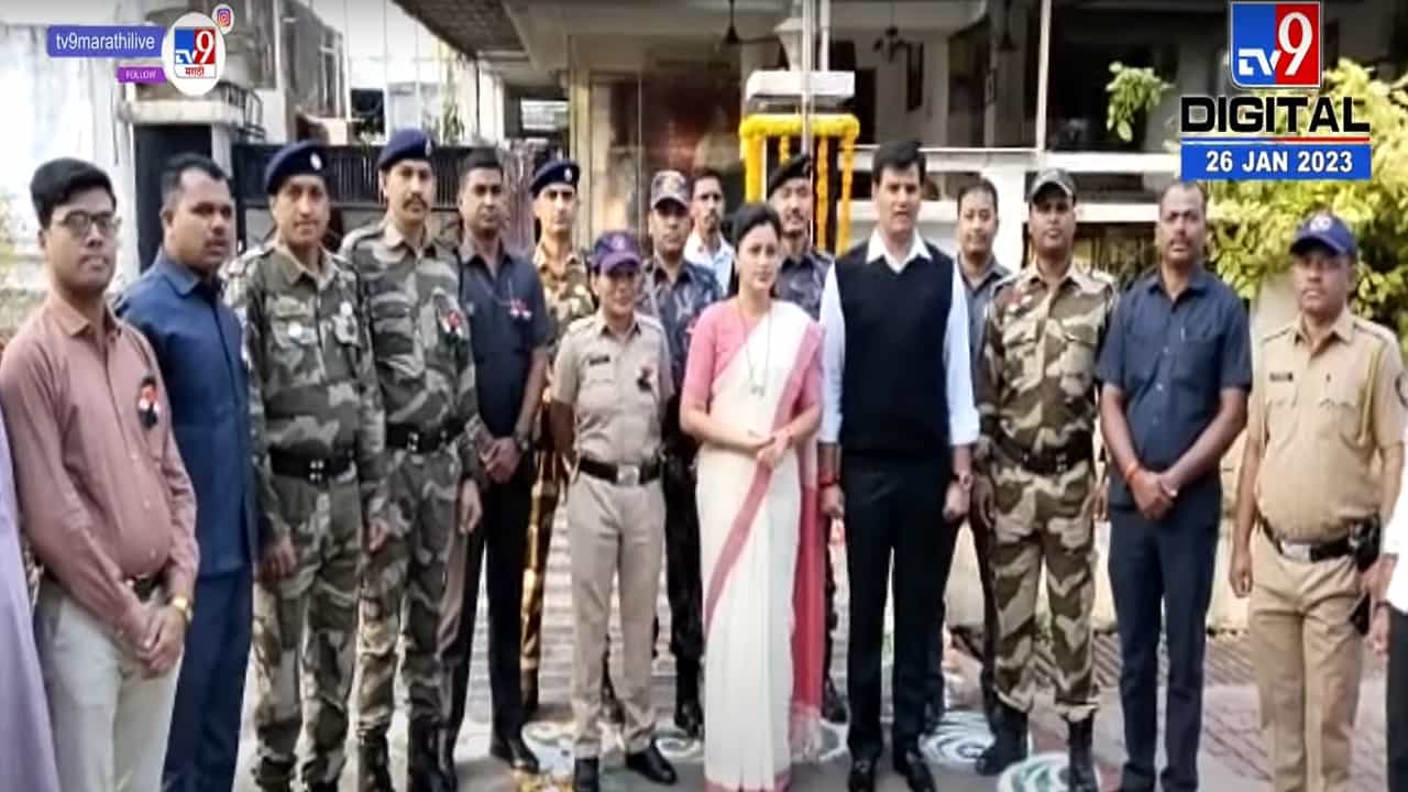 ध्वजारोहण झाल्यानंतर नवनीत राणा यांनी सुरक्षा रक्षकांना जिलेबी, मिठाई वाटून प्रजासत्ताक दिनाच्या शुभेच्छा दिल्यात