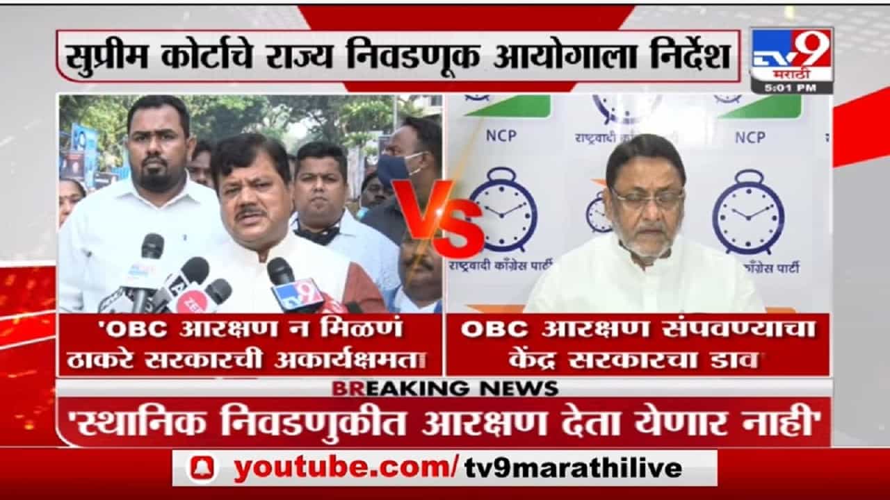 मुंबई : ओबीसींच्या राजकीय आरक्षणाच्या (OBC Reservation) मुद्द्यावरुन महाविकास आघाडी सरकारला (Mahavikas Aghadi Government) मोठा झटका बसलाय. स्थानिक स्वराज्य संस्थांच्या निवडणुकीत (Local Body Elections) ओबीसी समाजाला 27 टक्के आरक्षण देता येणार नाही, असं आदेश सर्वोच्च न्यायालयाने (Supreme Court) राज्य निवडणूक आयोगाला दिले आहेत. या पार्श्वभूमीवर अल्पसंख्याक विकास मंत्री नवाब मलिक यांनी सर्वोच्च न्यायालयाच्या या आदेशाचा स्थानिक स्वराज्य संस्था निवडणुकीत काय परिणाम होणार याचा अभ्यास केला जाईल, असं सांगितलं आहे. तसंच ओबीसी आरक्षणाशिवाय निवडणूक नको ही आमची भूमिका स्पष्ट असल्याचंही मलिक म्हणाले. अन्य राज्यात असे कायदे आहेत, त्या धरतीवर हा कायदा बनवला होता. पक्ष आणि सरकारची भूमिका स्पष्ट आहे. मंडल आयोगाच्या शिफारशीनुसार 27 टक्के आरक्षण दिले, त्याला कोर्टाने मान्यता दिली होती. पण राजकीय आरक्षणाबाबत नवीन वाद निर्माण केला जात आहे. आमच्या पक्षाची भूमिका कोणत्याही आरक्षणाला बाधा येऊ नये अशीच आहे, असं मलिक म्हणाले.