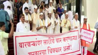 विधानभवनाच्या पायऱ्यांवर विरोधकांच्या आंदोलनाने सर्वांचं लक्ष वेधून घेतलं. वारकरी लाठीचार्जचा मुद्दा घेत विधानभवनाच्या पायऱ्यांवर विरोधकांचं आंदोलन केलं. वारकरी वेशात विरोधक आंदोलन केलं.