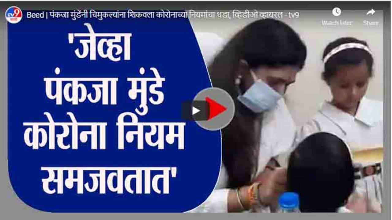 Beed | पंकजा मुंडेंनी चिमुकल्यांना शिकवला कोरोनाच्या नियमांचा धडा, व्हिडीओ व्हायरल