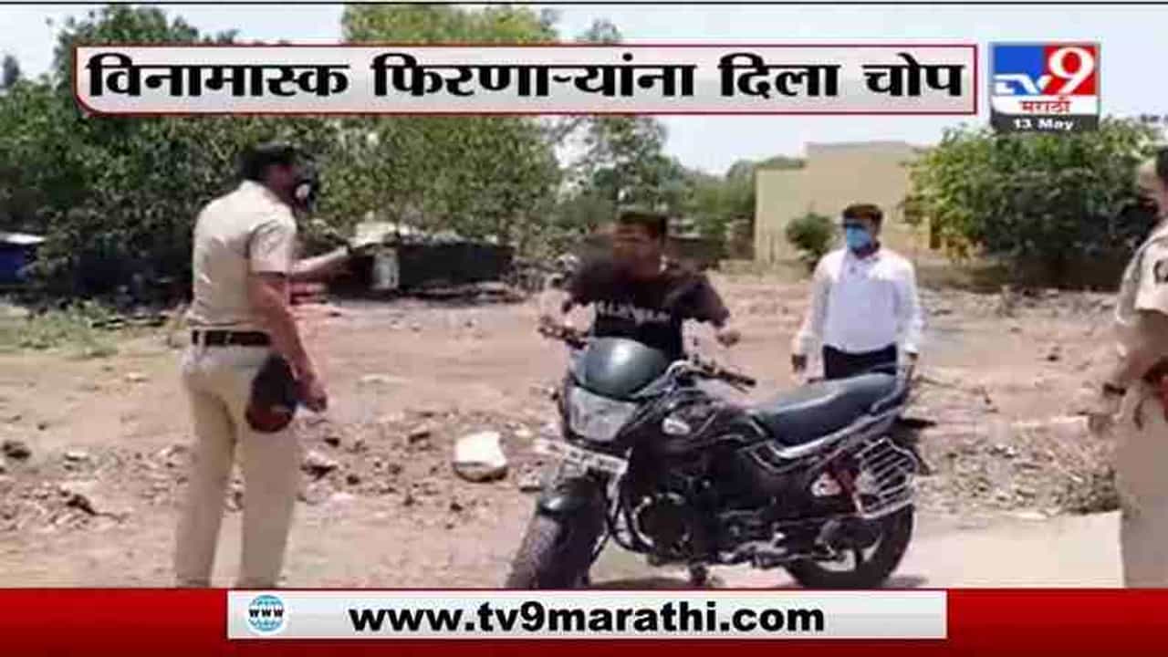 Nashik | नाशिकमध्ये विनामास्क फिरणाऱ्यांना पोलिसांनी दिला चोप (Police beat up those walking around in Nashik without masks)