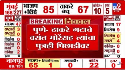 पुण्यात, ठाकरे गटाचे नेते वसंत मोरे आणि त्यांचा पुत्र पिछाडीवर आहेत. मनसेमधून ठाकरे गटात आलेल्या वसंत मोरे यांचा करिष्मा चालला नसल्याचे हे चित्र आहे.