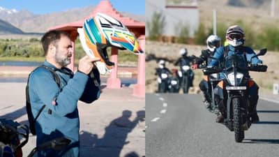 राहुल गांधी यांची लडाखच्या रस्त्यावर स्पोर्ट्स बाईकची राईड; फोटो सोशल मिडियावर व्हायरल