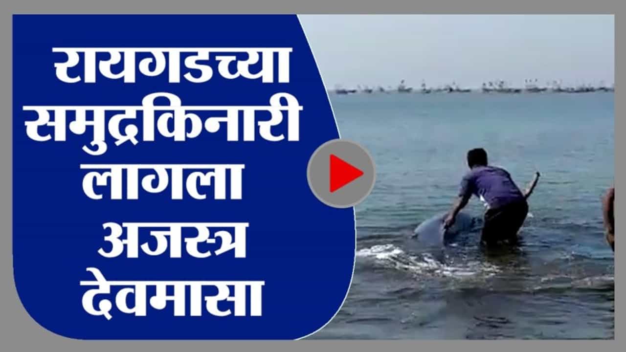 रायगड जिल्ह्यातील श्रीवर्धनमधील समुद्र किनाऱ्यावर देवमासा आढळला आहे. (Raigad Whales fish)