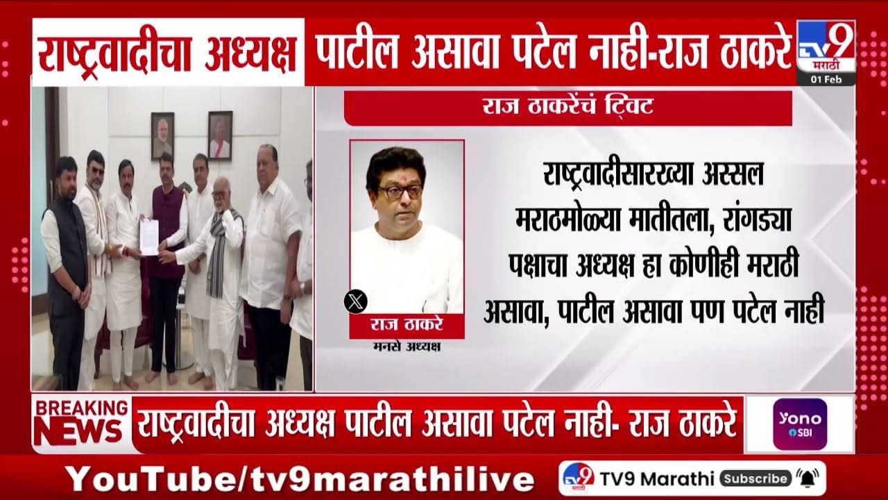 Raj Thackeray Tweet : राष्ट्रवादीचा अध्यक्ष पाटील असावा पटेल नाही! राज ठाकरेंचं ट्विट