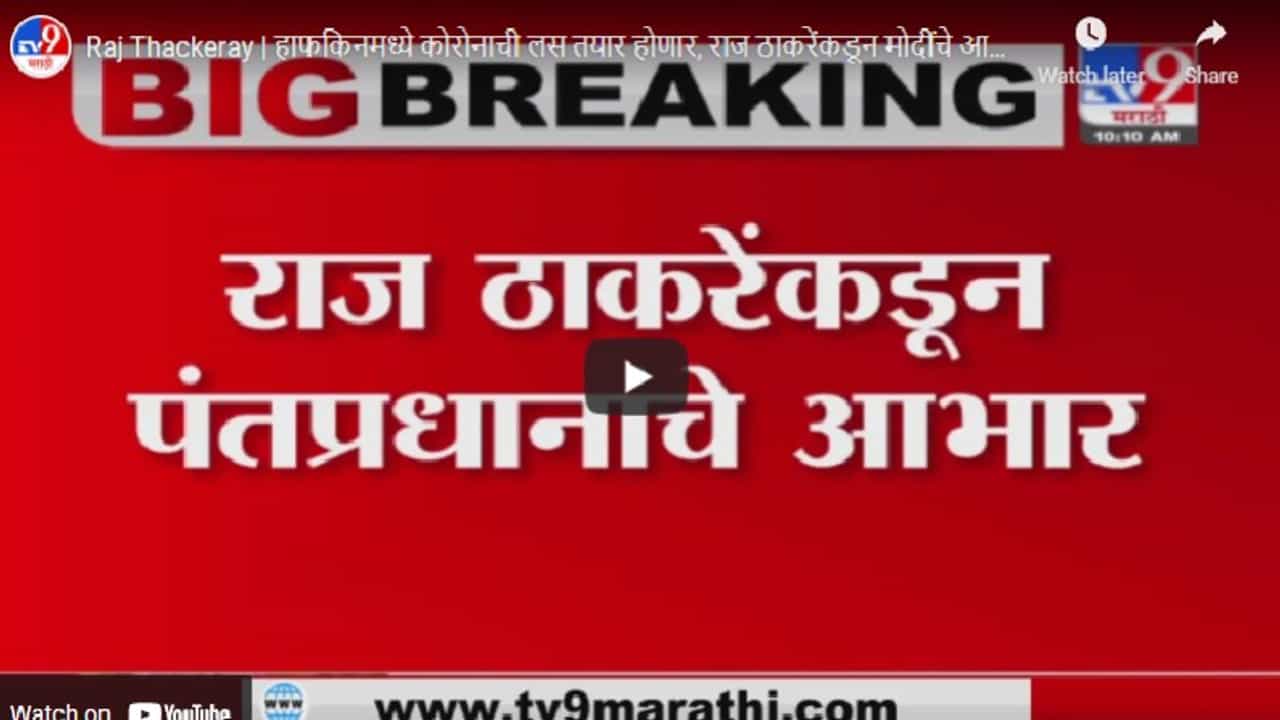 केंद्र सरकारने हाफकिन इन्स्टिट्यूटला कोरोना लस उत्पादनाची परवानगी दिली आहे. मुख्यमंत्री कार्यालयाकडून याबाबतची माहिती देण्यात आली आहे. हाफकिन इन्स्टिट्यूटला कोरोना लस उत्पादनाची परवानगी मिळाल्यानंतर मनसे अध्यक्ष राज ठाकरे यांनी पंतप्रधान नरेंद्र मोदींसह केंद्र सरकारचे आभार मानले आहेत. केंद्र सरकारकडून असंच सहकार्य मिळाल्यास आपण एकत्रितपणे या संकटावर मात करु, असे राज ठाकरेंनी म्हटलं आहे.