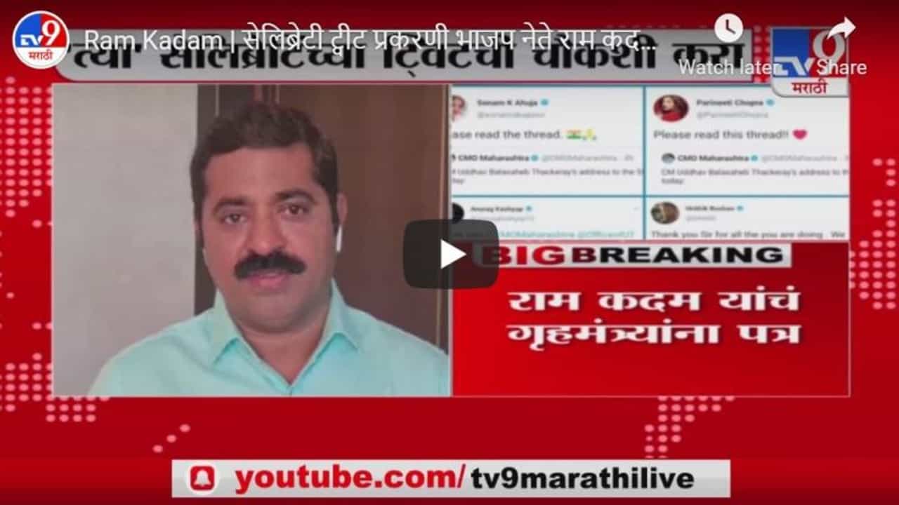 Marathi News Videos Ram kadam bjp leader ram kadams letter to home minister regarding celebrity tweet