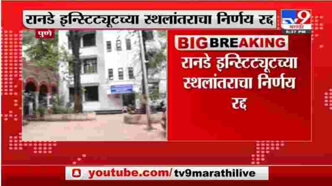 Breaking | रानडे इन्स्टिट्यूटच्या स्थलांतराचा निर्णय रद्द, पुणे विद्यापीठानं नव्यानं पत्रक काढलं