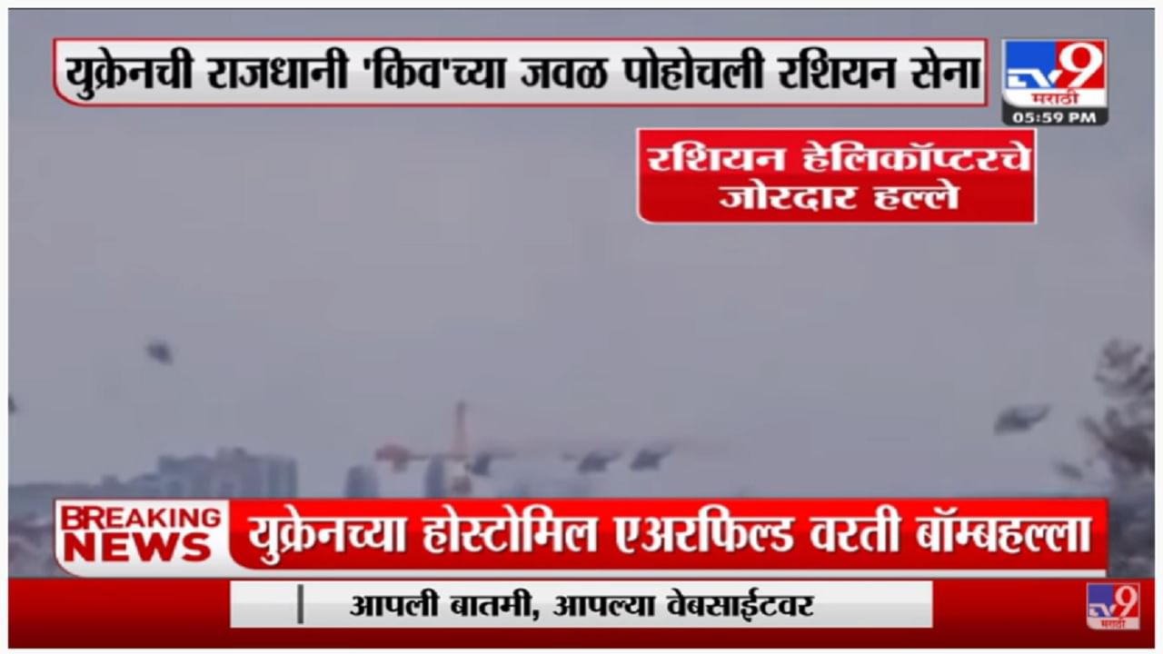 रशियानं यूक्रेनवर जोरदार हल्ले सुरु केले आहेत. रशियन फौजांनी यूक्रेनला चारी बाजूनं घेरलं आहे. रशियाचं सैन्य यूक्रेनची राजधानी किव जवळ पोहोचलं आहे. यूक्रेनच्या राजधानीपासून रशियाचं सैन्य 75 किमीवर पोहोचलंय. रशियानं यूक्रेनवर हवाई हल्ले केले असून बॅलेस्टिक मिसाईडल डागल्या आहेत. तर, लोक वास्तव्याला असलेल्या भागात हल्ले करत नसल्याचं रशियाचं म्हणनं आहे. रशियानं पॅराशूटद्वारे सैन्य यूक्रेनमध्ये उतरवायला सुरुवात केलीय.