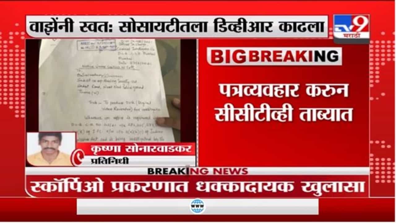 Sachin Vaze | सचिन वाझेंनी स्वत; सोसायटीतला डिव्हीआर काढला, पत्रव्यवहारांची tv9 कडे कॉपी