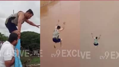VIDEO : पुराच्या पाण्यात पुलावरुन उडी, सांगलीत तरुणाची थरारक स्टंटबाजी