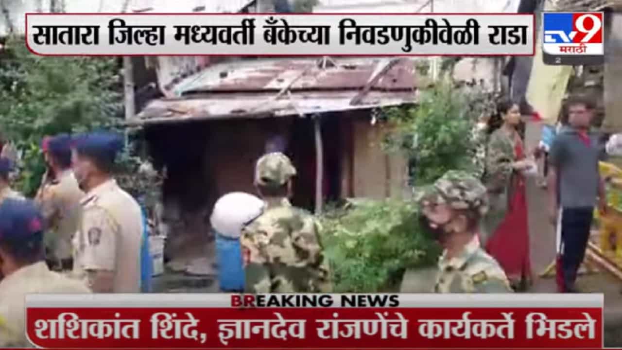 सातारा: सातारा जिल्हा मध्यवर्ती बँकेच्या निवडणुकीसाठी आज मतदान होत आहे. जिल्हा बँकेच्या 11 जागा बिनविरोध झाल्या असून 10 जागांसाठी मतदान होत आहे. राष्ट्रवादीचे विधान परिषद आमदार शशिकांत शिंदे, सहकार मंत्री बाळासाहेब पाटील आणि गृहराज्यमंत्री शंभूराज देसाई यांच्या निवडणुकीकडं प्रामुख्यानं जिल्ह्याचं लक्ष लागलं आहे. शशिकांत शिंदे यांच्यासमोर राष्ट्रवादी काँग्रेसचेच ज्ञानदेव रांजणे यांनी आव्हान निर्माण केलं आहे. पक्षाच्या बड्या नेत्यांनी समजूत काढून देखील रांजणे यांनी माघार घेतलेली नाही. आज मतदानाच्या दिवशी या कारणामुळे जावलीतील मेढा येथे दोन्ही उमेदावारांचे समर्थक आमनेसामने आले. अखेर पोलिसांनी या प्रकरणात हस्तक्षेप करत प्रकरण मिटवण्याचा प्रयत्न केला.