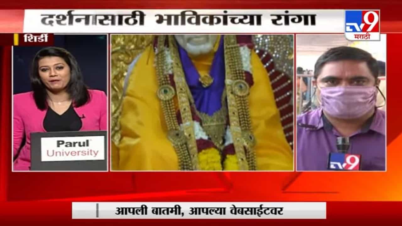 शिर्डीतील साई मंदिरात भाविकांची मांदियाळी, दर्शनासाठी रांगा