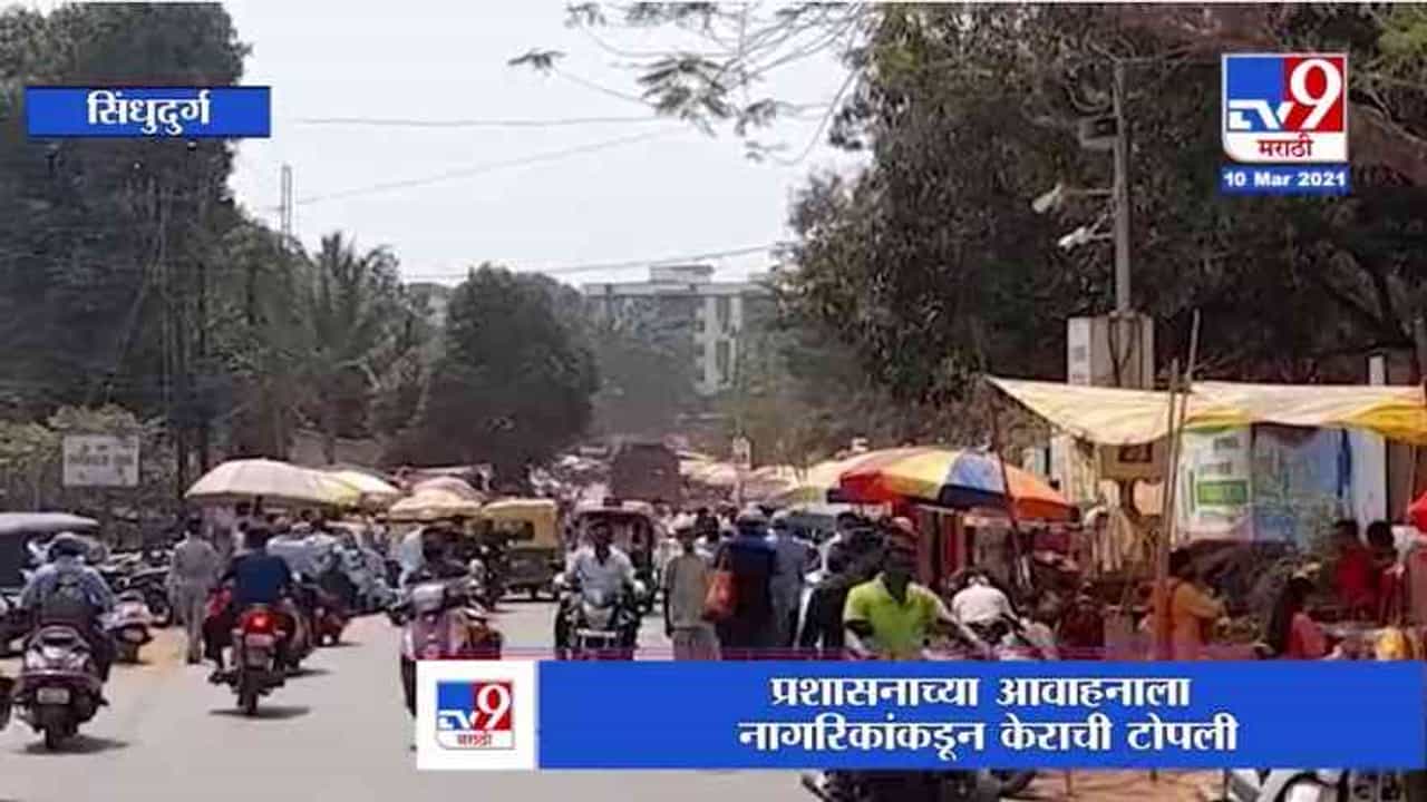 Sindhudurg | कुडाळमध्ये नागरिकांना कोरोनाचा विसर; आठवडा बाजार, बसस्थानकात नागरिकांची तुफान गर्दी (social distance violation in kudal market and bus depot)