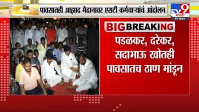 विरोधी पक्षनेते प्रवीण दरेकर, आमदार गोपीचंद पडळकर, आमदार सदाभाऊ खोत रिमझिम पावसात ST कामगारांसोबत पावसामध्ये आंदोलनाला बसले. जोपर्यंत मागणी पूर्ण होत नाही, आम्ही आंदोलन करणार. सरकारला दिसत नाही का की पाऊस पडतोय. एसटी कामगार पावसात आहे. बीएमसी हेडकॉटर समोर आहे. मात्र, एसटी कर्मचाऱ्यांकडे कुणाचे लक्ष नाही, पाणी नाही, लाईट नाही, जोपर्यंत आमची मागणी पूर्ण होत नाही तोपर्यंत आझाद मैदानातच मुक्काम राहिल, असं भाजप नेत्यांनी स्पष्ट केलंय.