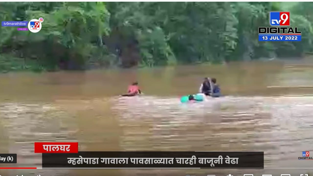 पालघर: टायरच्या सहाय्याने विद्यार्थ्यांचा नदीतून जीवघेणा प्रवास