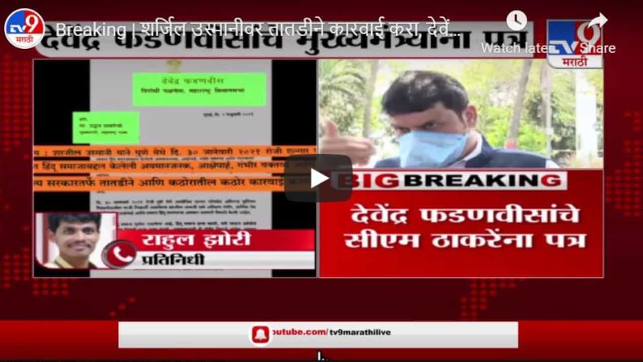 Breaking | शर्जिल उस्मानीवर तातडीने कारवाई करा, देवेंद्र फडणवीसांचे मुख्यमंत्र्यांना पत्र
