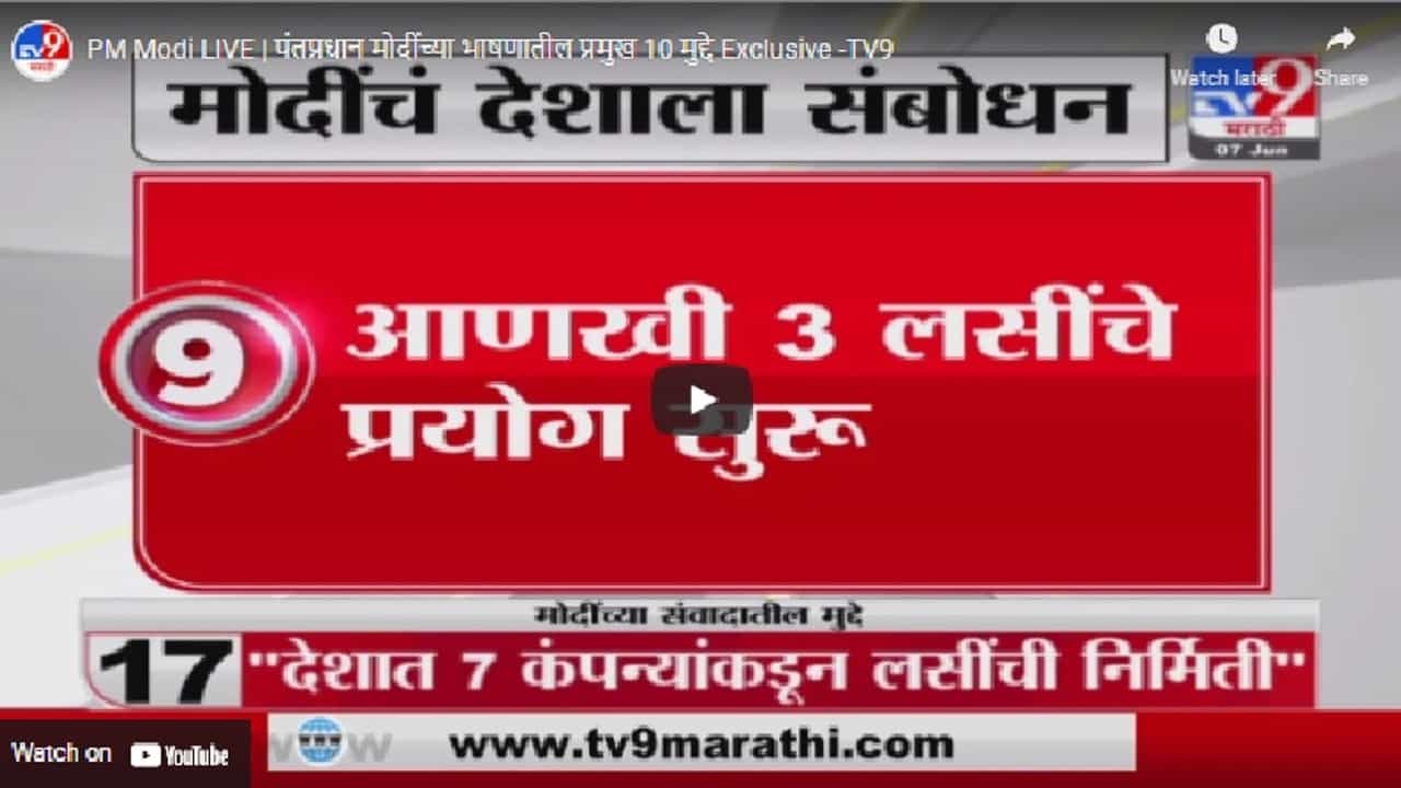 मुंबई : पंतप्रधान नरेंद्र मोदी यांनी देशाच्या जनतेशी आज सायंकाळी पाच वाजता ऑनलाईन पद्धतीने संवाद साधला. यावेळी मोदी यांनी अनेक मोठ्या घोषणा केल्या. त्यांनी 18 वर्षावरील सर्वांना मोफत लस दिली जाईल असे सांगितले. पाहा त्यांच्या भाषणातील महत्त्वाचे दहा मुद्दे…