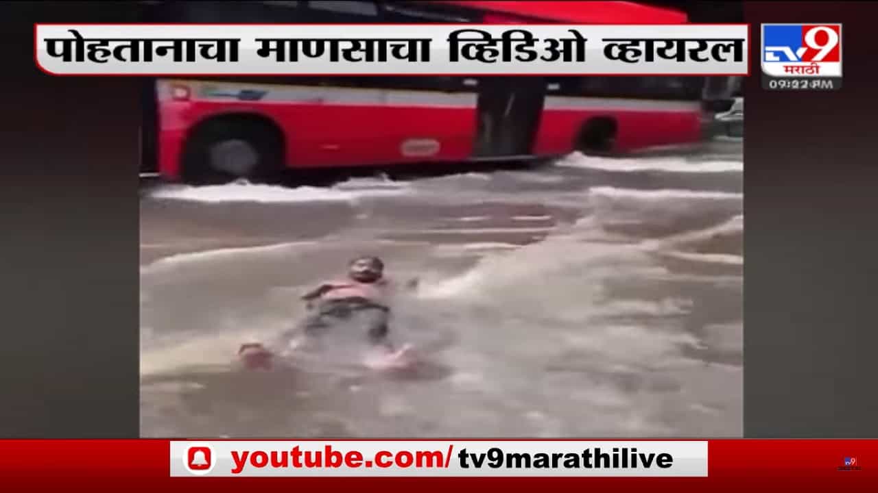 मुंबईत(Mumbai) पावसाने(Rain) धुमाकूळ घातला आहे. ठिकठिकाणी पाणी साचले आहे. यामुळे रस्त्यांना स्वीमींग पुलचे स्वरुप आले आहे. एका व्यक्तीने या स्वीमींगपुल पोहण्याचा आनंद लुटला आहे(pleasure of swimming). त्याचा व्हिडिओ व्हायरल झाला आहे.