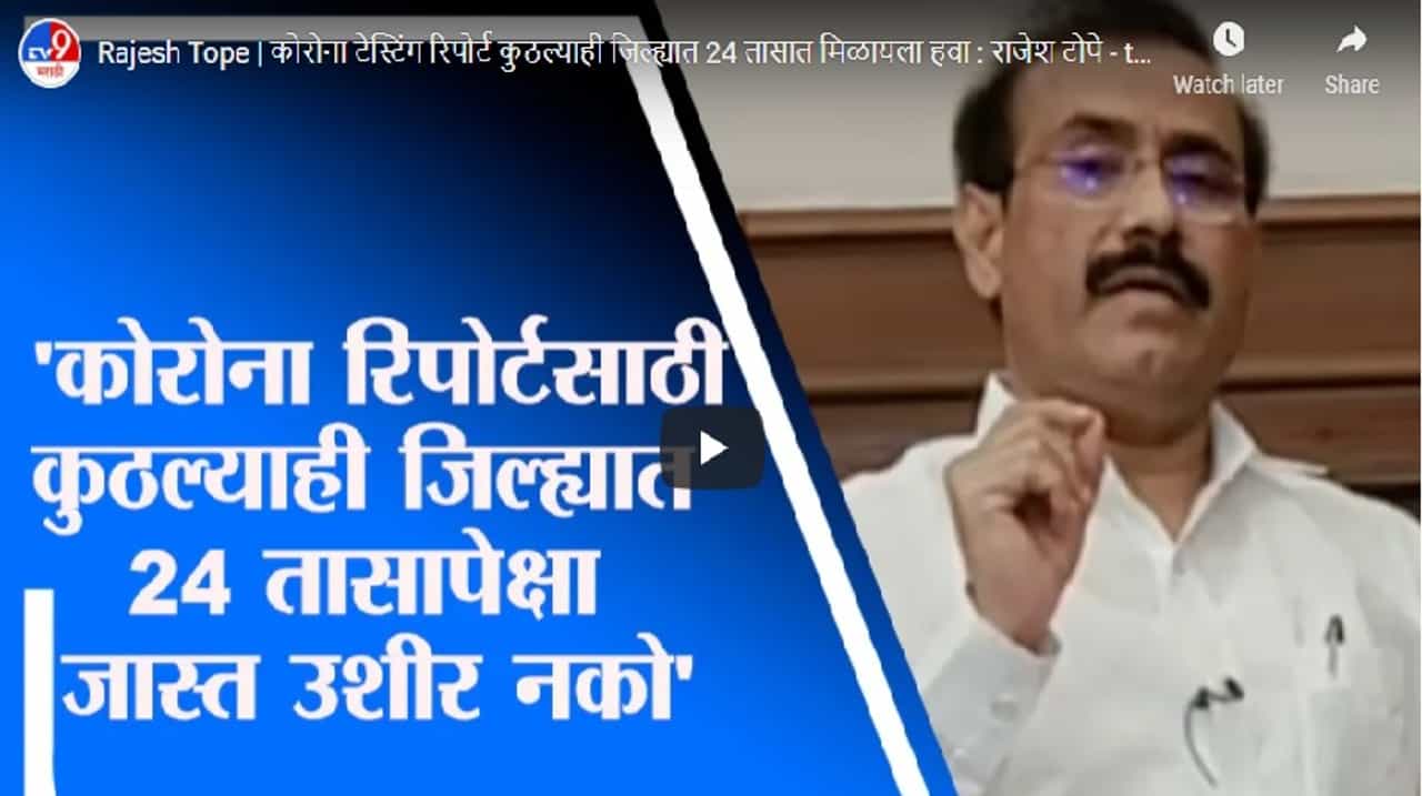 Marathi News Videos There should be no delay for corona test report within 24 hours report should be given to people said rajesh tope