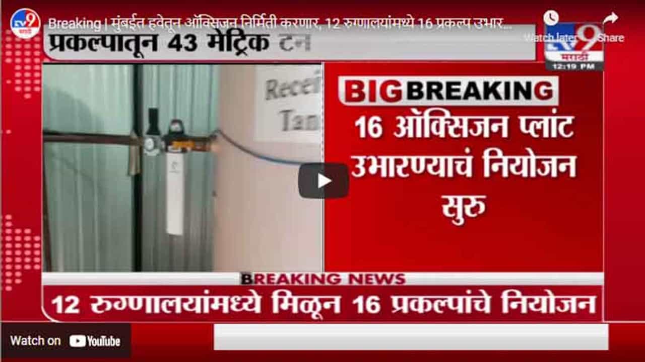 Breaking | मुंबईत हवेतून ऑक्सिजन निर्मिती करणार, 12 रुग्णालयांमध्ये 16 प्रकल्प उभारणार