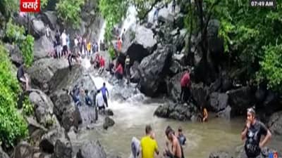 Tungareshwar WaterFalls : तुंगारेश्वर धबधब्यावर पर्यटकांची गर्दी; पोलिसांच्या आदेशाला हरताळ