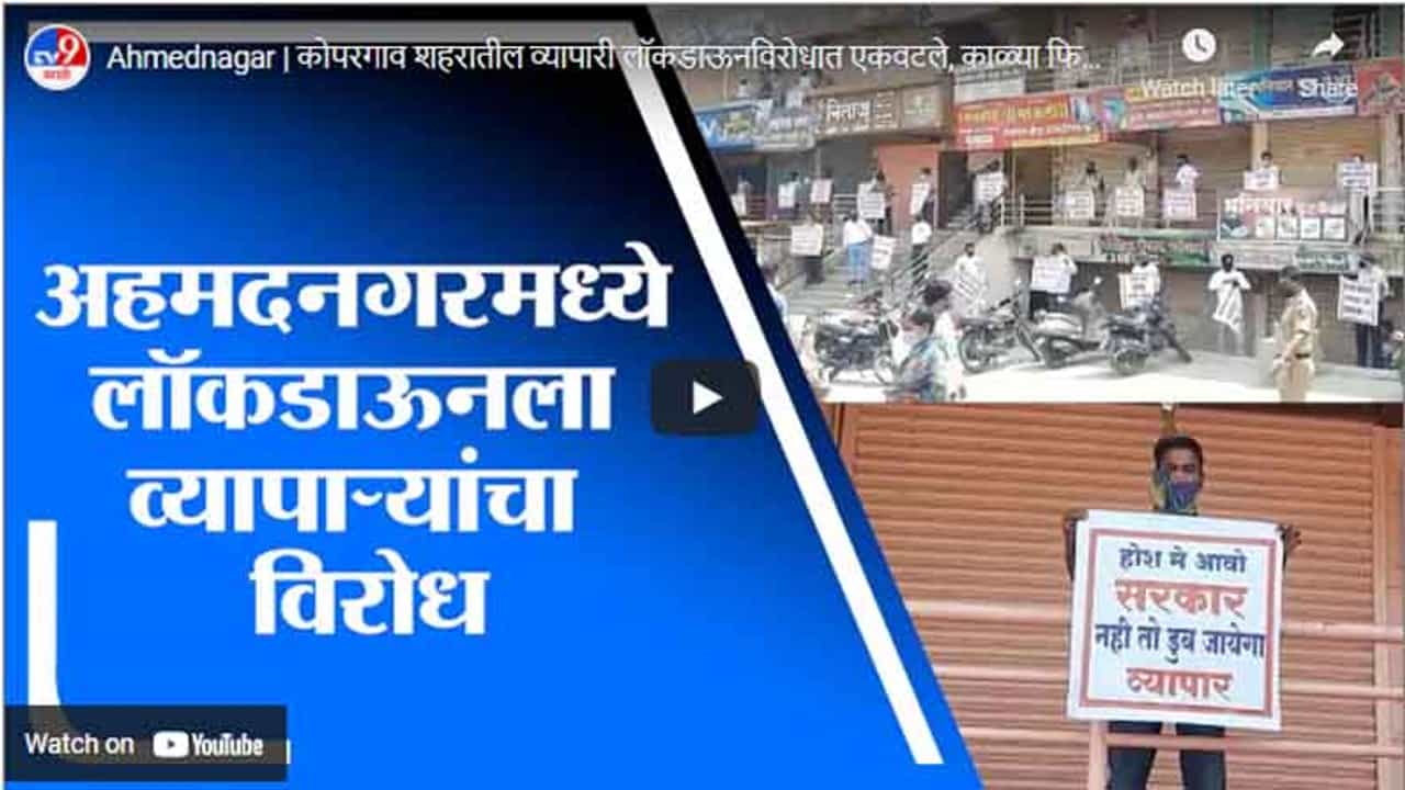 Marathi News Videos Traders in kopargaon rallied against the lockdown protesting with black ribbons at ahmednagar