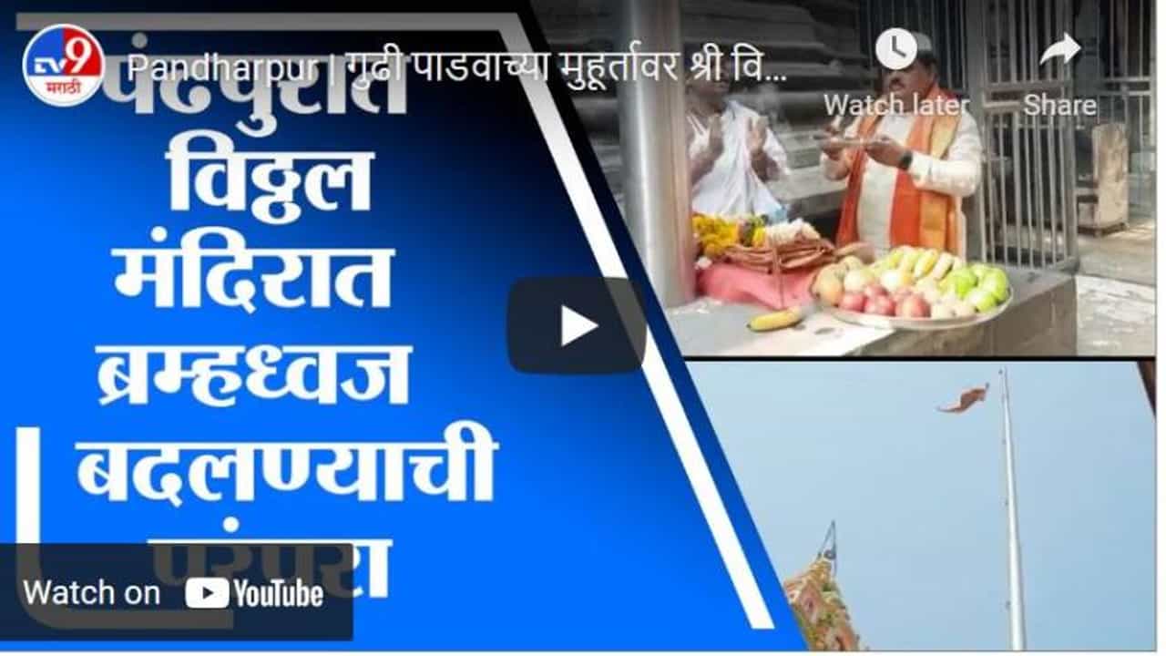 Marathi News Videos Tradition of changing the brahmadhvaj on the temple of sri vitthal on the occasion of gudi padva