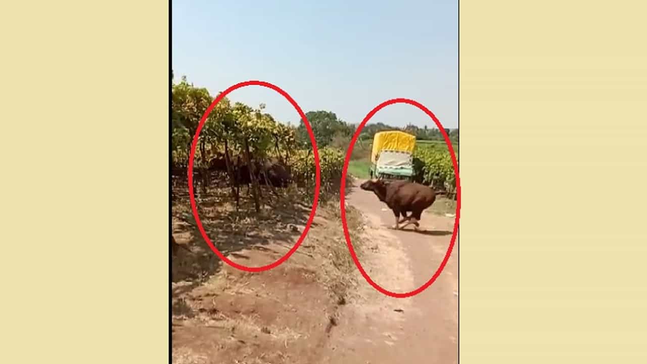 VIDEO | द्राक्ष बागेत गव्यांचा धुडगूस, शेतकऱ्यांना पळता भूई थोडी, पाहा व्हिडीओ