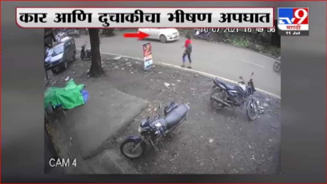Mumbai | शहापुरातल्या आग्रा रोडवर दुचाकी आणि कारमध्ये भीषण अपघात; घटना CCTVमध्ये कैद