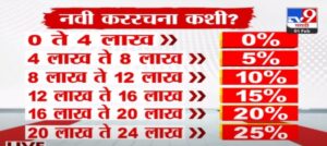 अर्थमंत्री निर्मला सीतारमण यांनी जाहीर केल्याप्रमाणे 0-8 लाखापर्यंतच्या उत्पन्नावर 5 टक्के कर द्यावा लागणार आहे. 8-12 लाखापर्यंतच्या उत्पन्न असणाऱ्यांना दहा टक्के, 12-16 लाखापर्यंतच्या कमाईवर 15 टक्के आयकर द्यावा लागेल. 16 ते 20 लाख उत्पन्नावर 20 टक्के आयकर तर 20 लाख ते 24 लाख उत्पन्नावर 25 टक्के कर द्यावा लागणार आहे.