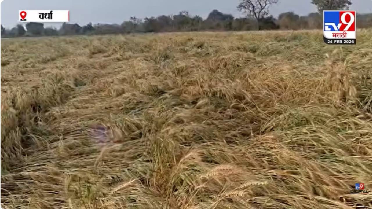 वर्धा जिल्ह्यातील काही भागांना अवकाळी पावसाने जोरदार तडाखा दिला असून वादळी वारा आणि गारपिटीमुळे रब्बी हंगामातील पिकांचे मोठ्या प्रमाणात नुकसान झाले आहे. अचानक आलेल्या पावसामुळे अनेक ठिकाणी गव्हाचे पीक जमीनदोस्त झाले आहे. जिल्ह्यात काही भागांत गारपीटही झाल्याने शेतकऱ्यांच्या अडचणीत अधिक भर पडली आहे.