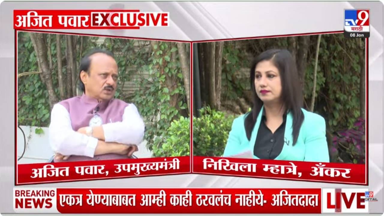 उपमुख्यमंत्री अजित पवार यांनी नुकताच टीव्ही ९ मराठीशी संवाद साधला. त्यामध्ये अजित पवार यांनी स्थानिक स्वराज्य संस्थाच्या निवडणुका ते दोन्ही राष्ट्रवादी एकत्र येण्यासंदर्भात भाष्य केले. अजित पवार म्हणाले, सध्या त्यांच्या पक्षाने फक्त दोन महापालिकांमध्ये एकत्र आहोत आणि इतर ठिकाणी स्वतंत्र लढण्याचा निर्णय घेतला जाईल.