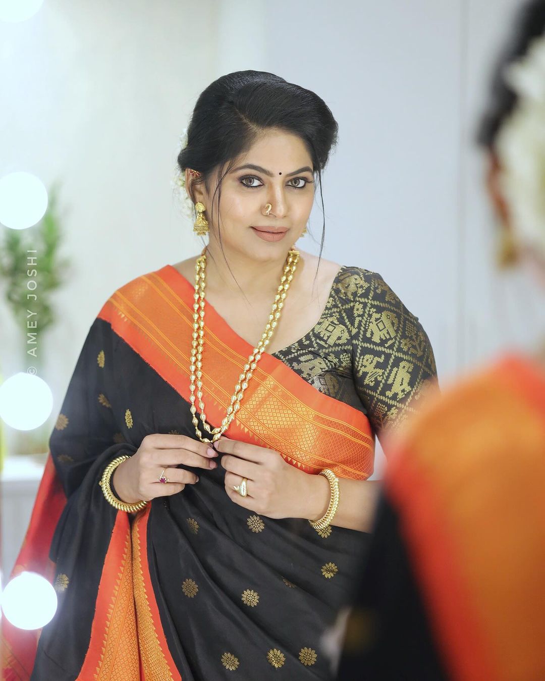 काळ्या रंगाच्या साडीमध्ये दिलखेच अदा