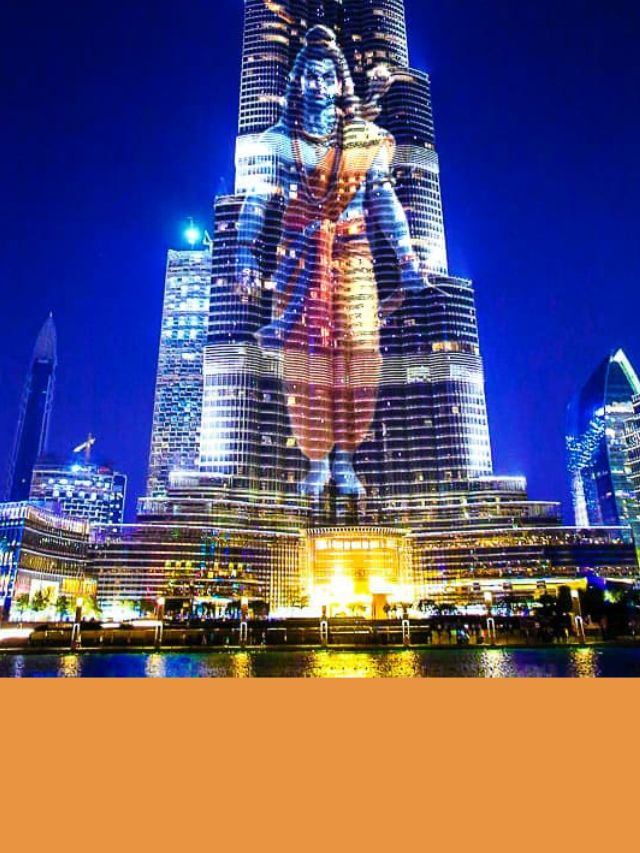 बुर्ज खलिफावर ऋषींचा वेशात भगवान रामाचे चित्र आहे. त्यावर 'जय श्री राम' असे लिहिले आहे.