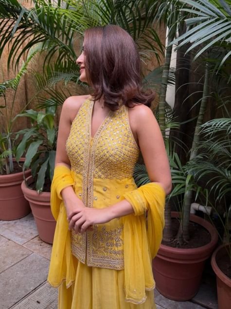 पिवळ्या ड्रेसमध्ये नव्या हिने फोट पोस्ट केले आहेत.